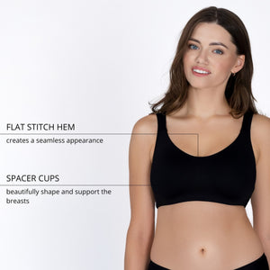 -Formuota, trijų sluoksnių, minkštų FORMUOTŲ kaušelių (be paralono) laisvalaikio liemenėlė. Liemenėlė suteikia krūtinei prilaikymą ir puikų komfortą, tinka lengvai fizinei veiklai.