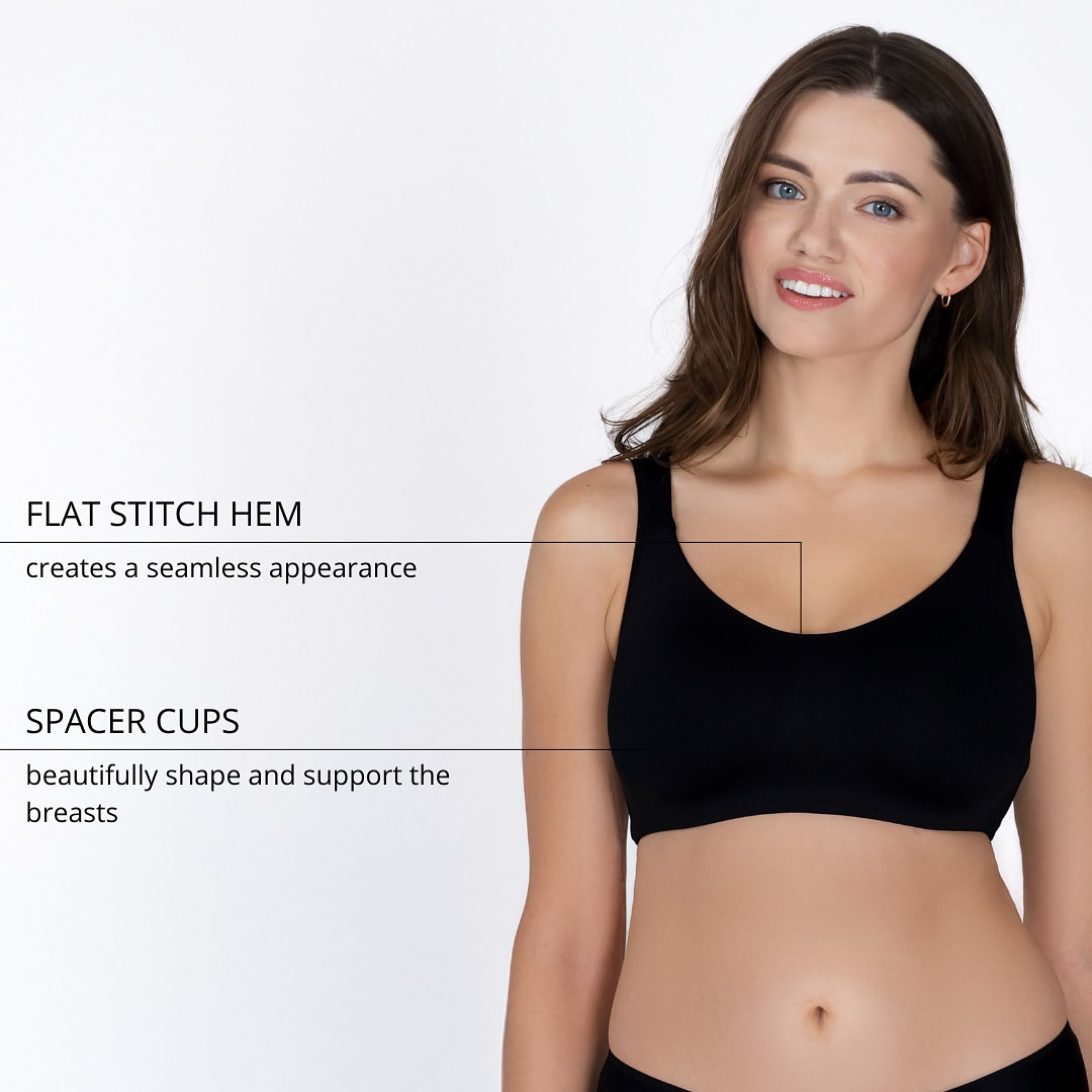 -Išgaubti kaušeliai pasiūti iš orui laidaus, kvėpuojančio audinio.