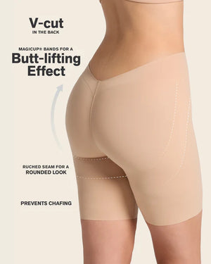 - Stipresnio formavimo šortukai, yra besiūliai, audinio siūlės apdorotos naujausia tremo technologija, panaudojant šilumą, todėl jie bus nepastebimi po rūbais. PagamInti iš labai švelnaus audinio;