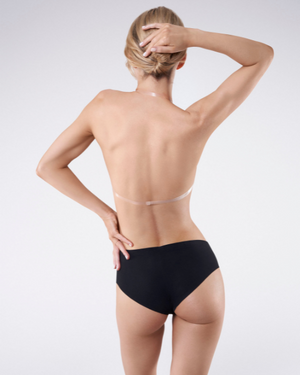 - Silikoninė, dvipusė iš abiejų pusių priklijuojama liemenėlė su petnešėlėmis.
