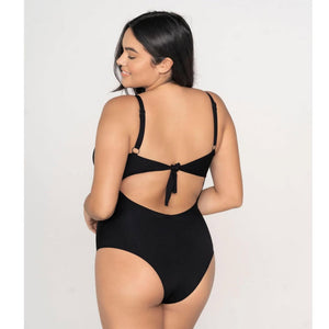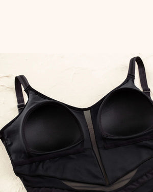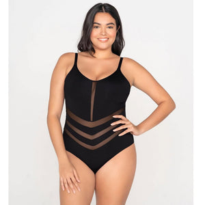 - Liekninantis maudymosi kostiumėlis, su vertiklalia siūlė, kuri nepriploja sėdmenų, pasiūtas iš stipresnės kompresijos PowerSlim® audinio pilvuko srityje, puikiai tinka turinčioms putlesnę krūtinę, jos nedidina, aukštesnė iškirptė ją pamaskuoja;