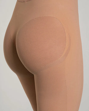 - Specialūs įsiūvai suteiks lengvos kompresijos šlaunims ir klubams, tačiau sėdmenų dalis apgaubta medžiaga, pagaminta iš tampraus permatomo tinklinio audinio, kuris neprispaus sėdmenų, bet juos gražiai suformuos, suapvalins, o papildoma įsiūta juosta po sėdmenimis juos šiek tiek kilstels į viršų;