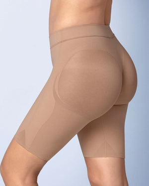 - Šortukai išmodeliuoti taip, kad skirtingose kūno vietos būtų skirtinga kompresija, kuris dailiai formuotų problematiškas kūno vietas;