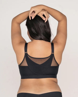 -Pečių juostą atpalaiduojanti, koreguojanti laikyseną, reguliuojamo dydžio multifunkcinė liemenėlė, be vielinių lankelių;