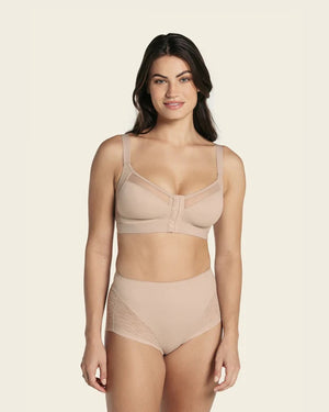 -Priekyje yra 2 lygių reguliuojamas užsegimas metaliniais kabliukais, liemenėlė tinkama dėvėti po krūtų didinimo/mažinimo operacijos;