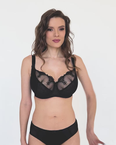 - Elegantiška liemenėlė su lankeliais, be pakietinimo su plačiomis, minkštomis petnešėlėmis, formuotais kaušeliais.