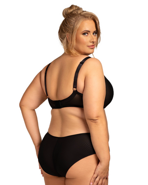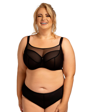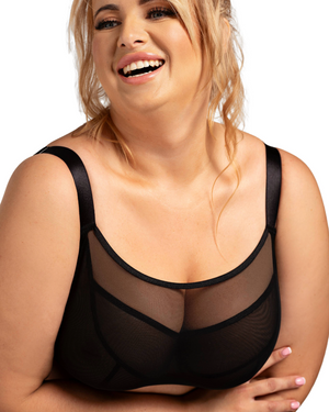 - Elegantiška liemenėlė su lankeliais, be pakietinimo su plačiomis, minkštomis petnešėlėmis, formuotais kaušeliais ir "mesh" tipo tinkleliu, kuris vizualiai pamažina, išlygina viršutinę krūtinės dalį.