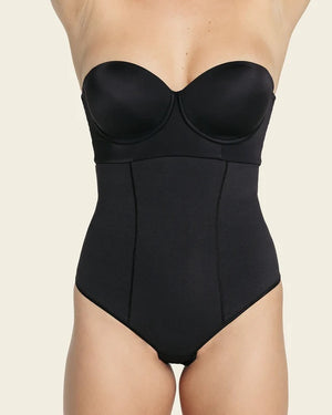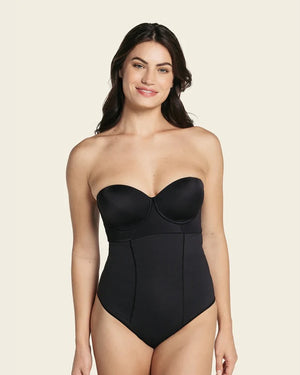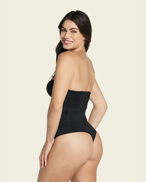- Korsetas yra su string tipo kelnaitėmis, todėl sėdmenys nebus priploti, tačiau galima dėvėti ir su besiūlėmis, pilnai sėdmenis dengiančiomis kelnaitėmis;