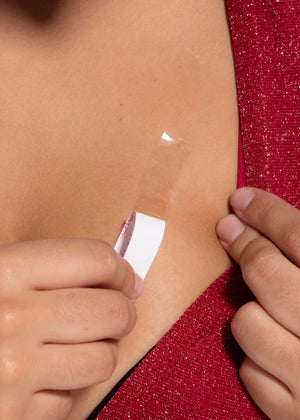 - Puikus sprendimas drabužiams su giliomis iškirptėmis, suknelėms be petnešėlių.