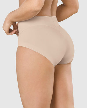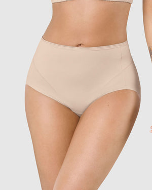 - Klasikinio tipo, stiprios kompresijos, lazerinio kirpimo kelnaitės aukštesniu juosmeniu, prispaudžia pilvą, formuoja sėdmenis ir juos kilsteli aukštyn;